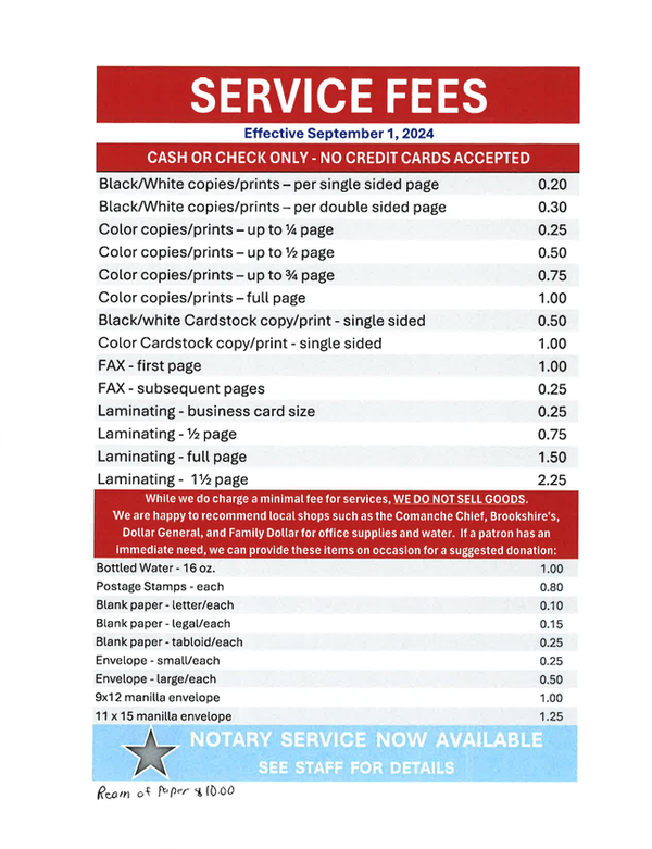 Printing, Fax, and LaminationVisit the library to access our printing, scanning, faxing, and lamination services.https://comanche.ploud.net/services/services-and-feeshttps://comanche.ploud.net/++resource++plone-logo.svg